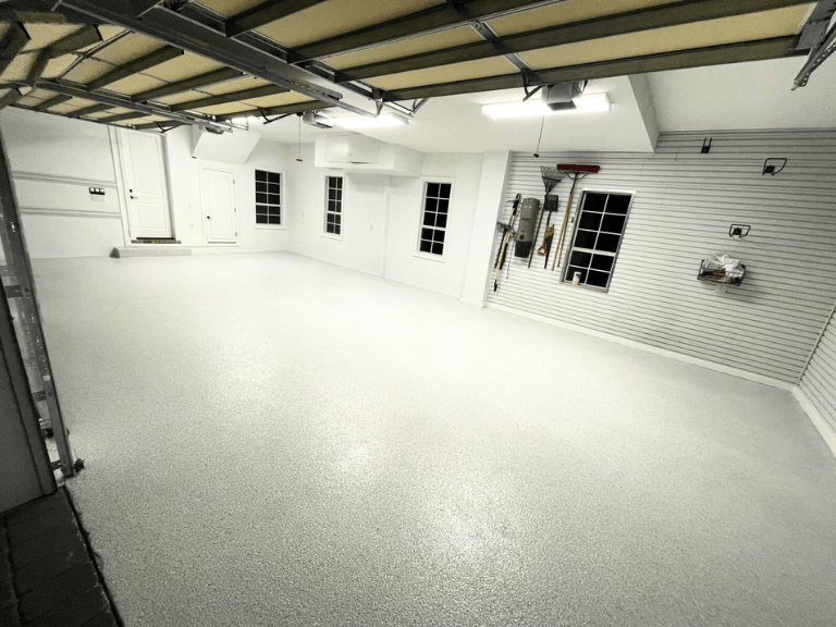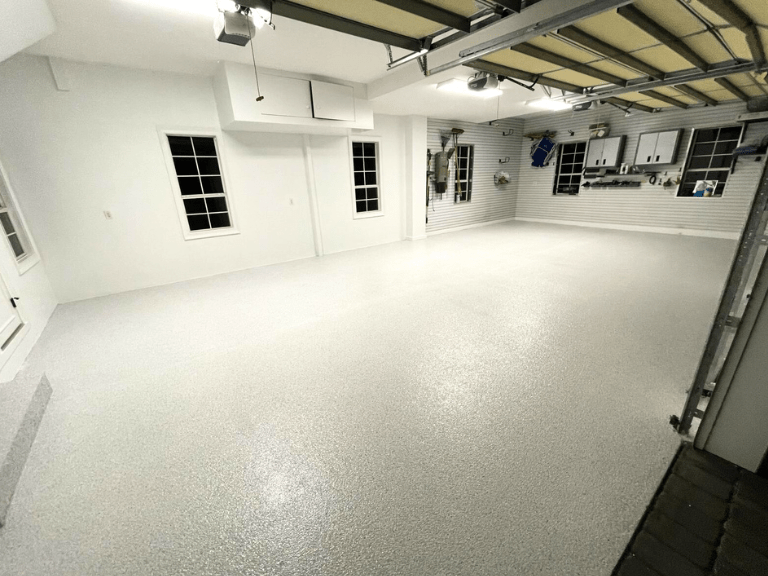 If you’re envisioning a sleek and modern look, a custom dominant white blend combined with a white base is an excellent choice. Here’s a step-by-step guide on how we properly prep and coat a concrete floor using a dominate white blend.